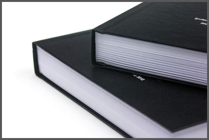 The binding process is a handcraft process, which uses a 3-mm laminating cardboard wrapped with geltex, guaflex, telflex or any other fabric to make the cover. What gives s olid and professional finishes (see cover materials catalog).