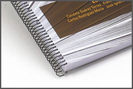 The binding process is a mechanic process in which by means of a metal jaw housed inside the cover sheets are secured to the spine. The cover is a cardboard of 2.5 mm. geltex wrapped, guaflex or telflex. What gives a solid finish. Number of finishes are limited.